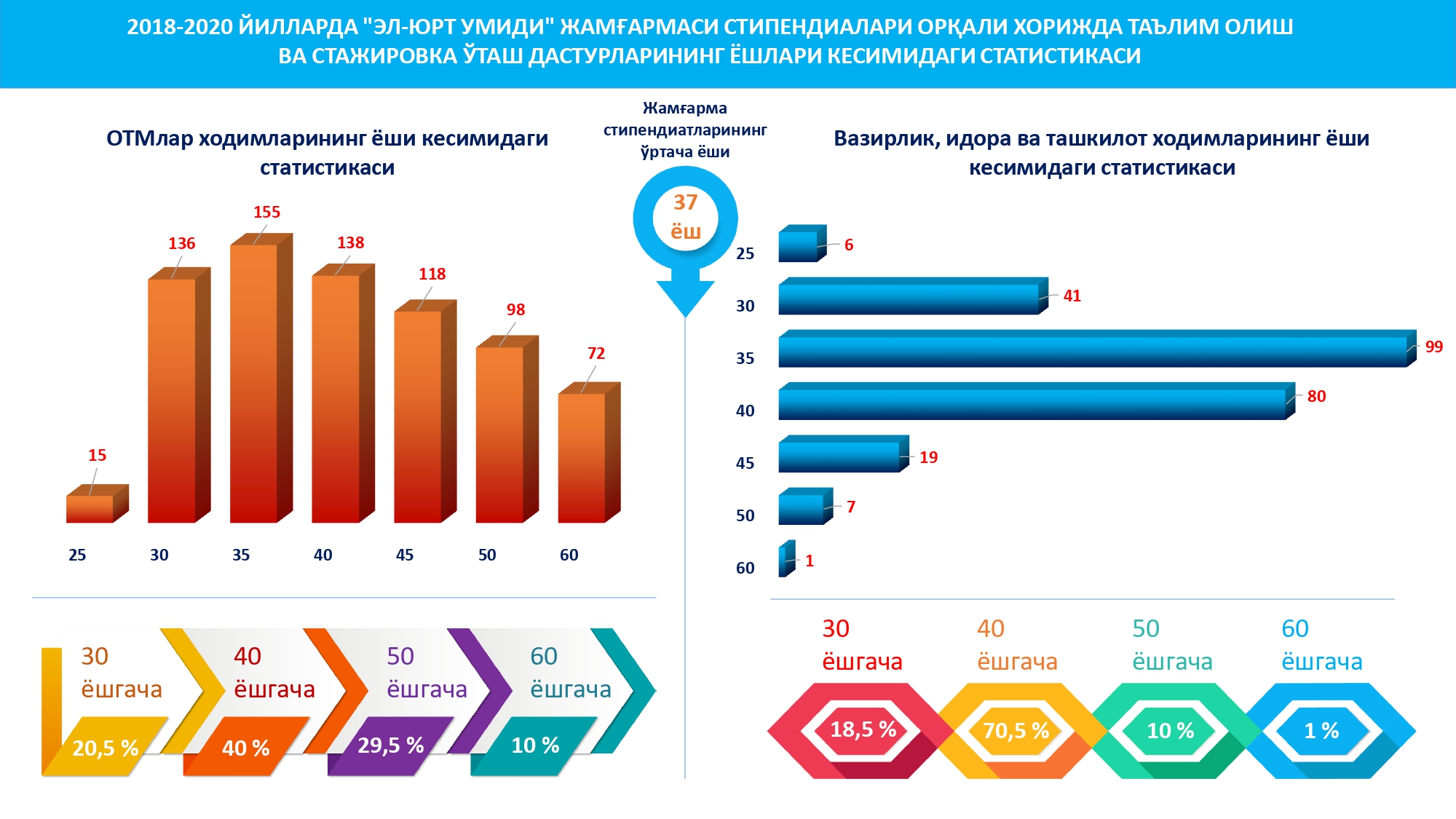 Жамғарма стипендиатларининг ёшлари кесимидаги статистикаси