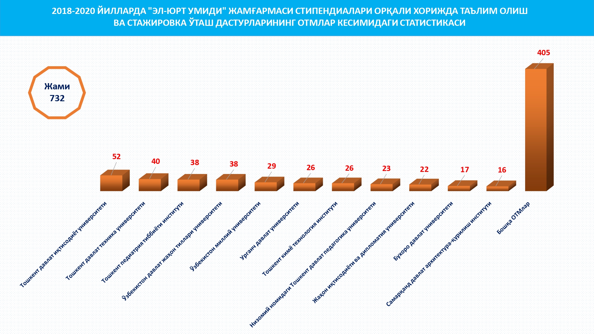 Жамғарма стипендиатларининг ОТМлар кесимидаги статистикаси