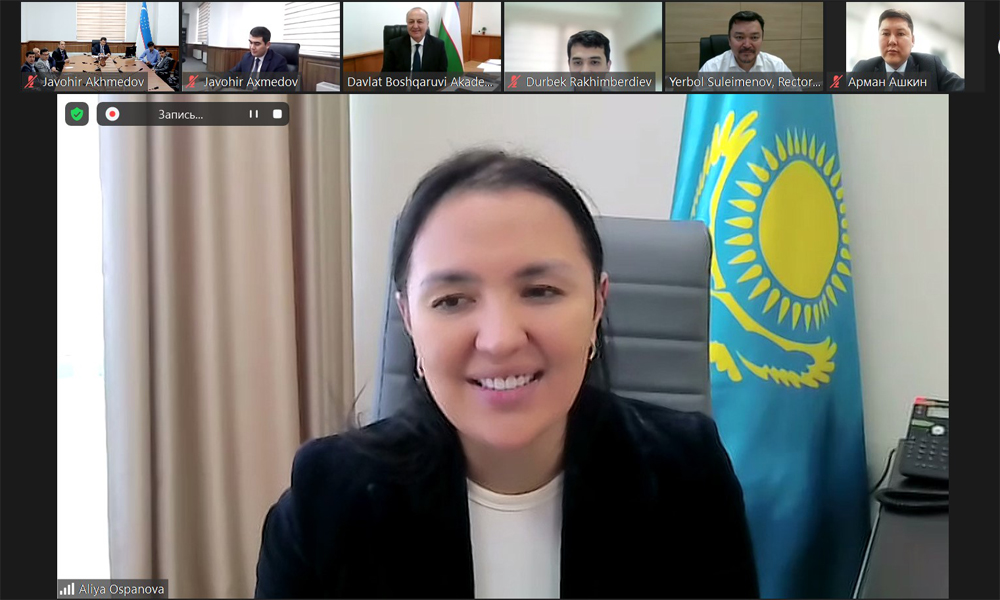 Мазкур онлайн учрашувда, Жамғарма ижрочи директори А. Бекмуродов “Болашак” дастури “Халқаро дастурлар маркази” бошқаруви раиси Алия Оспановани Жамғарма фаолияти билан таништирди.