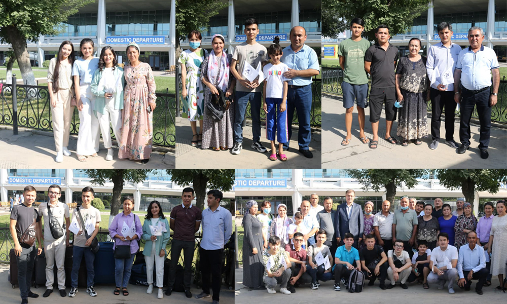 Тошкент халқаро аэропортида 12 нафар стипендиатлар, уларнинг ота-оналари, яқинлари ва Жамғарма ҳодимлари иштирок этишди.