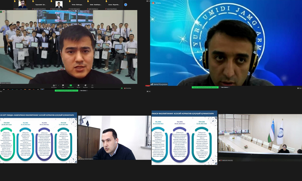 Жорий йилнинг 7 февраль куни «Эл-юрт умиди» жамғармаси раҳбарияти Тошкент М. Улуғбек номидаги Ўзбекистон Миллий университетининг профессор-ўқитувчиларига ва талабаларига «Эл-юрт умиди» жамғармаси стипендиясини ютиш ва қандай қилиб қатнашиши ҳақида вебинар бўлиб ўтди.