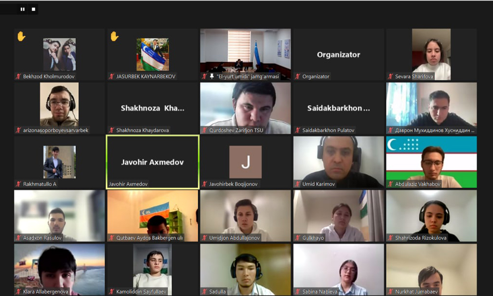 Онлайн учрашув жараёни қизғин савол жавобларга бой тарзда ўтказилиб, вазирликнинг барча раҳбар ходимлари билан Жамғарма стипендиатлари ўртасида тўғридан-тўғри мулоқот қилиш имконияти яратилиб, ҳамкорликда лойиҳалар амалга оширилишига келишиб олинди.