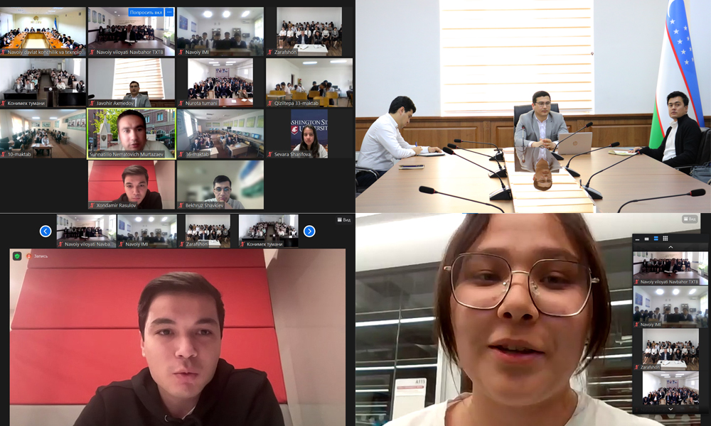 Онлайн мулоқотда иштирок этган Навоий вилоятидан бўлган “Эл-юрт умиди” жамғармаси стипендиатлари томонидан Жамғарма танловлари ва нуфузли хорижий университетлардаги ўқиш имкониятлари тўғрисида семинар иштирокчиларига маълумотлар берилди.