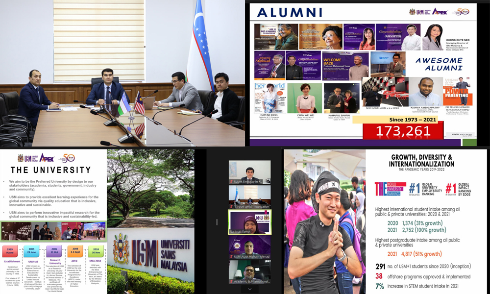 Мазкур учрашув якуни бўйича томонлар ҳамкорлик алоқаларини истиқболини белгиловчи юқоридаги таклифларни ўз ичига олган икки томонлама меморандум лойиҳасини ишлаб чиқиш, шунингдек, мамлакатимизнинг давлат хизматчилари ва ёшлари учун ҳамкорликда жорий йилнинг май ойида онлайн “Малайзия фан университетида таълим олиш имкониятлари” мавзусида семинар ташкил этишга келишиб олинди. Шунингдек, ўзаро ҳамкорлик алоқалари истиқболини белгиловчи ҳамкорлик меморандумини имзолаш бўйича, Ўзбекистоннинг Малайзиядаги элчихонаси вакилларини таклифлари инобатга олиниб, ҳар икки тараф вакиллари томонидан маъқулланиб, таклиф этилаётган йўналишлар бўйича меморандум лойиҳаси тайёрланиши ва тез орада имзолашга келишилди.