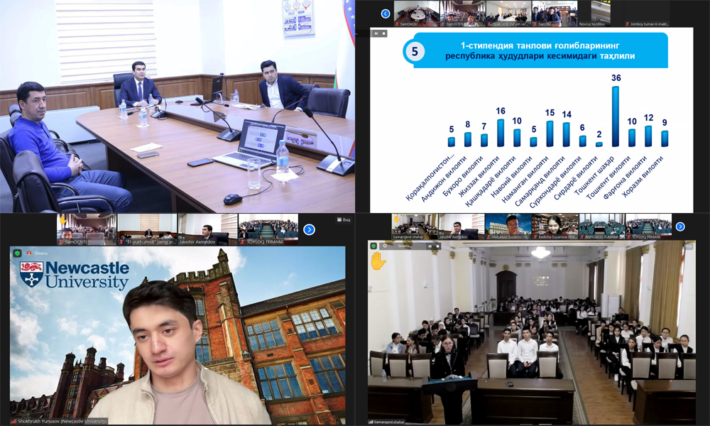 Онлайн семинарда Самарқанд вилоятидан бўлган Жамғарманинг хорижда таълим олаётган 24 нафар стипендиатлари ҳам иштирок этиб, Жамғарма танловлари ва нуфузли хорижий университетлардаги ўқиш имкониятлари тўғрисида семинар иштирокчиларига маълумотлар бердилар.